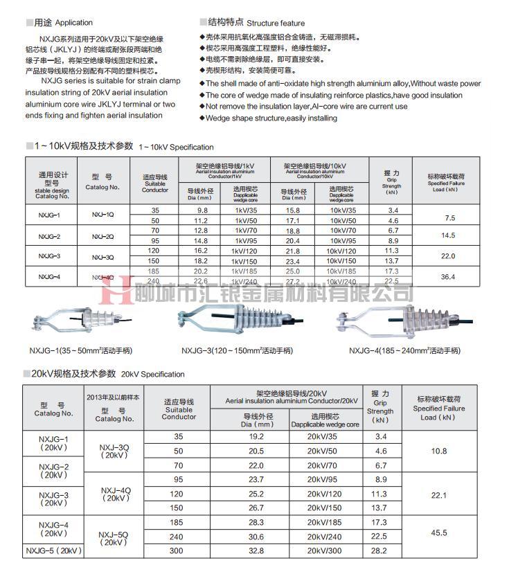 耐張線夾 楔型絕緣耐張線夾 NXJG系列耐張線夾 NXJG系列楔型絕緣耐張線夾